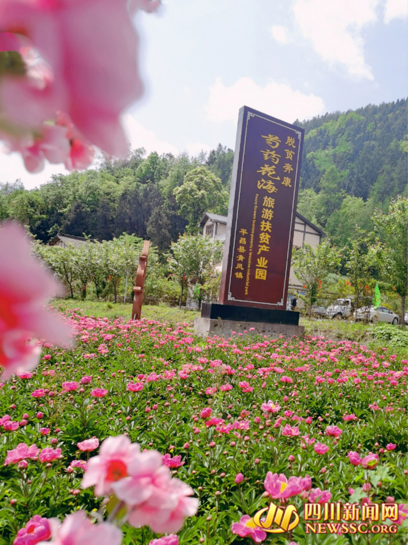 位于青凤镇龙井村、红宝村的芍药花海,成片的芍药花竞相怒放,清风徐来,花海荡漾,蔚为壮观。据了解,芍药花海景区面积12平方公里,种植芍药及其他贵重药材达1万亩,景区内有爱情花海、爱的源泉、千年相依、同心永结、龙形树、情路漫漫、生命之门、米仓古道、小山子古寨、观母洞等自然和人文景观、是国家AAAA级景区三十二梁景区的重要组成部分。农旅融合,传播旅游元素的同时,增加百姓收入。