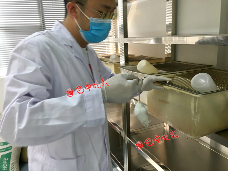 “‘养蚊子’还是个‘技术活’。”罗熙平介绍,成蚊在蚊笼中饲养,每笼密度为200只—300只蚊虫,还得在蚊笼上部放置糖水浸透的海绵作为饲料,每天更换一次。为了让蚊类顺利繁殖,需要动物供血,市疾控中心确定使用小白鼠为供血动物。为确保供血动物无污染,专程从川北医学院实验动物中心购买了30只实验用小白鼠和相应饲养设备和物资。