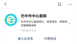 1、关注“巴中市中心医院”微信公众号(可扫描下方微信公众号二维码)