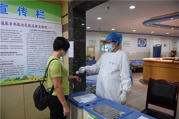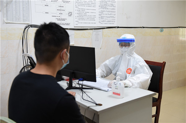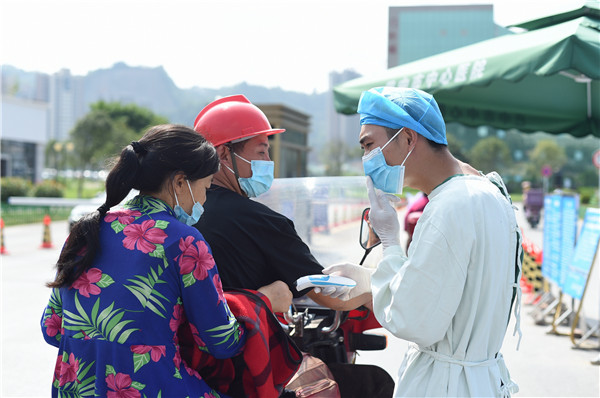 四川新闻网巴中7月31日讯(吴鑫)当前,疫情防控的重点是“内防反弹,外防输入”,作为全市新冠肺炎定点救治医院,巴中市中心医院继续开设24小时发热门诊、预检分诊、新冠病毒核酸检测,医务人员不畏酷暑,全副武装,在抗击疫情一线的各个岗位上坚守奉献。