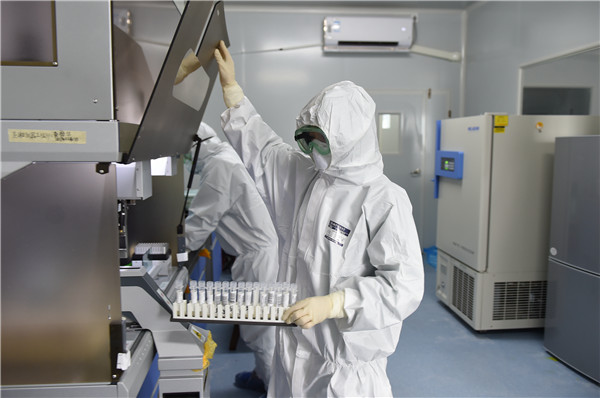 检验科技师在密闭的实验室内一待就是几个小时,对检验人员的体力和意志力都是一种挑战。平均每天进行新冠病毒核酸检测250-300人次。