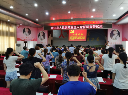 重温一次入党誓词。组织新老党员集中重温入党誓词,再一次接受入党誓词的洗礼,促进党员不忘为民服务初心,勇担守护健康使命,坚定信心,奋发有为,以实际行动恪守对党的承诺,立足本职争当先锋,为医院的建设和发展贡献自己的力量。