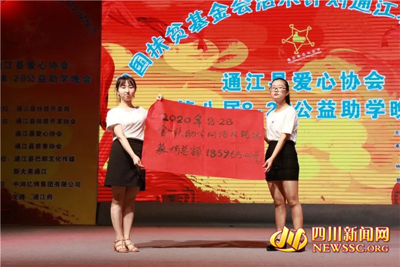 四川新闻网巴中8月31日讯(陈连波)金秋收获季,助学正当时;为爱伸援手,情暖上学路。2020年8月28日晚,由通江县扶贫开发协会、通江县爱心协会、通江县慈善协会承办的通江县扶贫捐资助学“活水计划”启动仪式暨第八届8.28“携手金秋﹒筑梦未来”公益助学晚会在通江县红军广场拉开帷幕。
