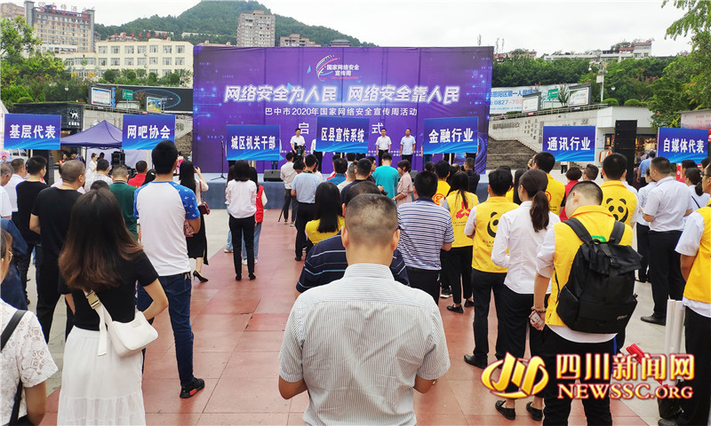 四川新闻网巴中9月14日讯(记者 张韵晗 摄影报道)9月14日,以“网络安全为人民·网络安全靠人民”为主题的巴中市2020年国家网络安全宣传周活动启动仪式在巴人广场隆重举行。城区机关干部、区县宣传系统代表、基层代表、金融行业从业人员、通讯行业从业人员、网吧协会从业人员、自媒体代表共300余人参加了本次活动。