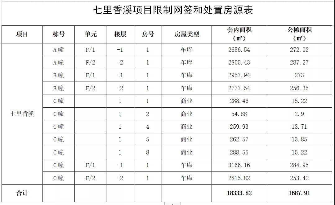 据了解,七里香溪项目位于江北龙泉四居民组张家河,系四川省巴中市永兴房地产开发有限公司(以下简称永兴公司)开发建设。该项目未售房屋18333.82平方米(其中商业门市1154.39㎡,地下车库17179.43㎡),作为该项目应补缴土地出让价款缴纳的担保。在应补缴的土地出让价款未缴清前,该未售房屋18333.82平方米的处置权归巴中市自然资源和规划局。在永兴公司应补缴的土地出让价款缴清以前,该未售房屋不得进行销售、转让、合作、出租、出借和另行设定任何抵押担保和查封等一切处置。