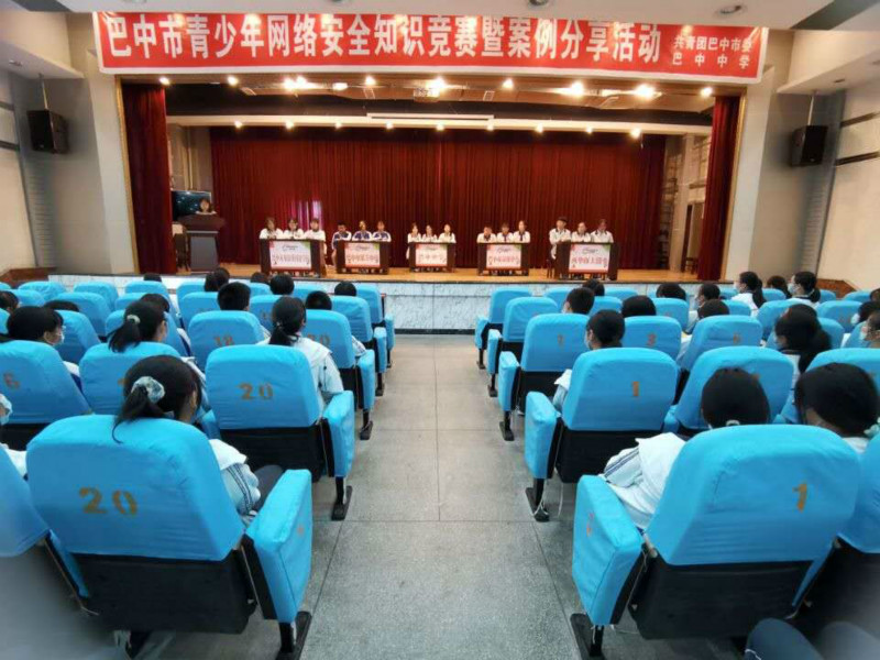 为有效提高青少年的网络安全意识,还开展了青少年网络安全知识竞赛活动。参赛学生分别来自巴中中学、巴中市第三中学、巴中市高级中学、巴中市龙泉外国语学校以及西华师大附中。知识竞赛分为选择题、判断题、问答题、抢答题四个环节,同学们表现积极,对安全知识掌握熟练,对答如流。最终,巴中市龙泉外国语学校摘得本次竞赛桂冠。