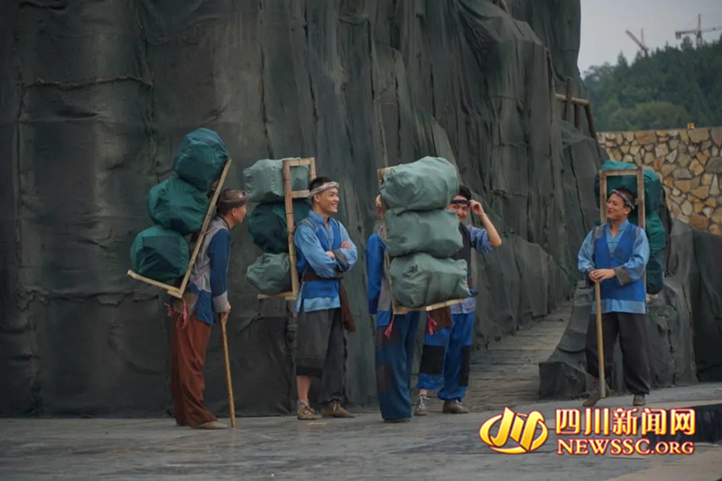 开幕式由山高、水长、情深、出发三个篇章和一个序,以及一个尾声构成,其中每个部分都有不同的主题展现。这场大戏的舞台设计精美,别具匠心,舞台分5个表演区域,一是以恩阳古镇为原型的微缩景观,一个以大巴山为背景的米仓古道微缩景观,而舞台前方设有一条以恩阳河为原型的蜿蜒河道,以及繁忙码头的等景观。以及一块巨大的LED屏组成舞台正中央大背景,大屏画面会和舞台上的演员同步。