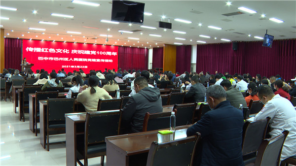 四川新闻网巴中3月23日讯(王少平)为隆重纪念党的百年华诞,进一步激励党员干部坚定理想信念、履职尽责、奋发有为,充分发挥战斗堡垒和先锋模范作用,3月22日下午,沂蒙精神宣讲团走进巴中市中医院(巴州区人民医院)回风院区,举行了“传播红色文化——庆祝建党100周年” 沂蒙精神宣讲会。巴州区卫健局机关党员干部、区级医疗卫生单位党组织负责人、党办主任及我院党员、中层干部300余人聆听宣讲。