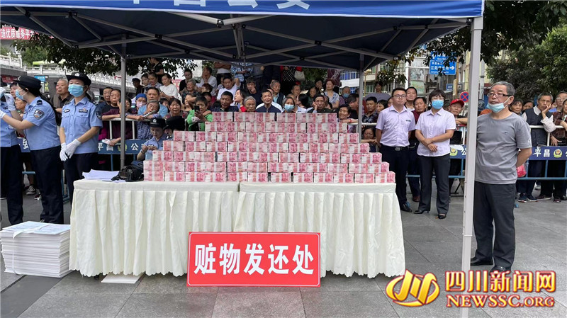 四川新闻网消息(李朝维)“当我接到平昌公安的电话,告诉我钱已经追回,我感到十分开心。”87岁的钱大爷从公安民警手中接过5万元现金时,一直在感谢民警。9月29日上午,平昌县公安局联合多部门在伯坚广场举行防范电信网络诈骗集中宣传暨群众被盗骗财物公开发还大会。