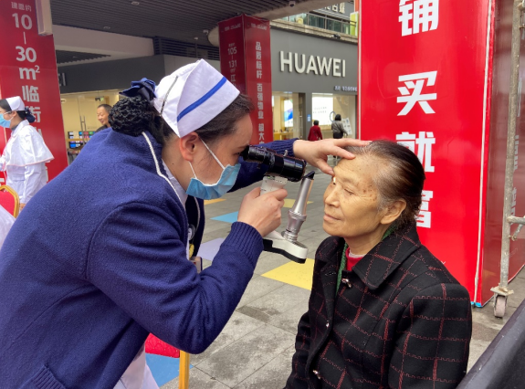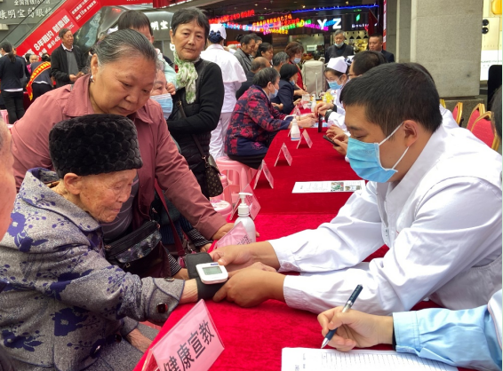 参加义诊的其他医护队员、党员和南丁格尔志愿者各司其职,有序为老人们免费测血糖、测血压、检查眼底,现场演示心脏复苏术、伤口造口护理和糖尿病护理技能,示教口罩佩戴方法,开展心理咨询和健康指导,发放健康宣传资料等。