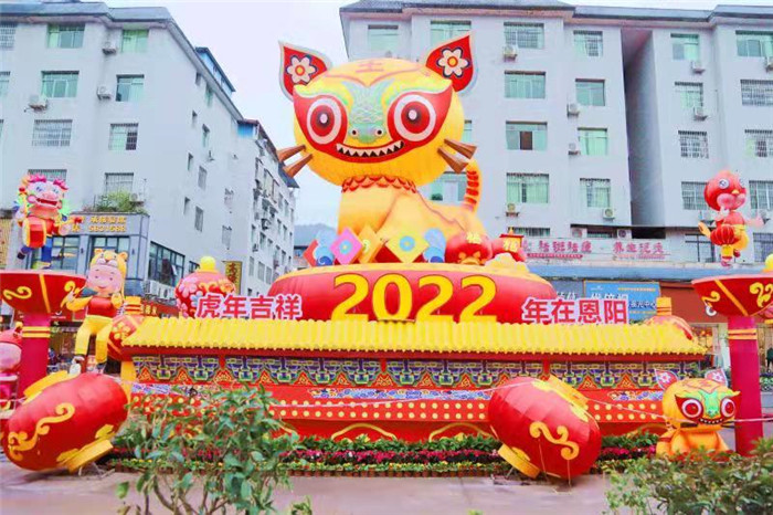 四川新闻网消息(刘欢 记者 张韵晗)“他乡纵有当头月,不及故乡一盏灯。”春节的脚步越来越近了,恩阳区的大街小巷已经换上春节的新装,城市的“年味”日渐浓厚。利达广场、恩阳高速路口、登科公园等城区繁华地段摆放着各式各样的花灯,以“虎年吉祥年在恩阳”为主题,生动形象、五彩斑斓,营造白天看景、夜晚赏灯的喜庆氛围迎接五彩缤纷的新年。华灯初上,走在恩阳的大街小巷到处都是火树银花、霓虹闪烁,不仅白天生机勃勃、人流聚集,到了晚上也成为了耀眼的“景色”。(供图:恩阳区融媒体中心)