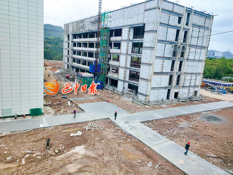 巴中新冠肺炎方舱医院由巴中市中医院(巴州区人民医院)负责实施,选址确定在巴中市传染病医院在建项目(位于巴州区光辉镇虎家梁村),依托市传染病医院在建项目既有建筑进行建设。方舱医院于今年4月2日开始修建,在施工人员的加班加点建设下,方舱医院初见雏形,目前病房隔断板已经基本安装完毕,工人们正在铺设厕所垫层、安装洁具、安设管道等。