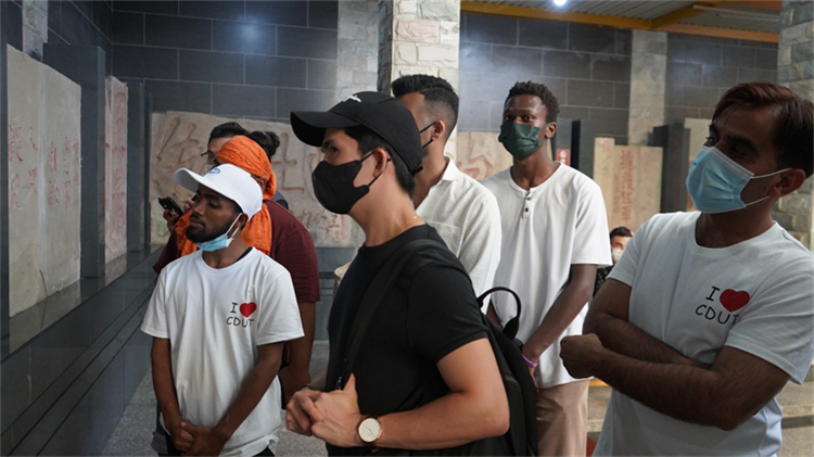 川陕革命根据地博物馆位于巴中巴州区南龛山国家AAAA级旅游景区,始建于1951年,系收藏、研究、展示中国工农红军第四方面军和川陕苏区历史的专题性博物馆。看见“智勇坚定、排难创新、团结奋斗、不胜不休”的红军训词,西华大学留学生阿里请随行翻译逐字逐句做了解释,表示会在学习上以这16个字时时激励自己。