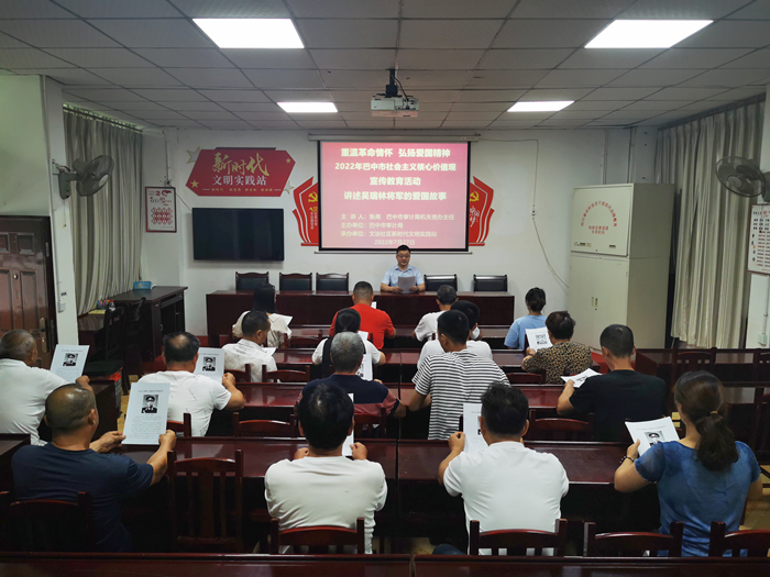 四川新闻网消息 为认真落实新时代文明实践站结对帮扶工作,进一步加强爱国主义教育、社会主义核心价值观教育和传统革命精神教育,大力提升人民群众精神共识,为党的二十大胜利召开营造良好氛围,7月27日下午,巴中市审计局到恩阳区文治社区新时代文明实践站开展“重温革命情怀、弘扬爱国精神”社会主义核心价值观主题宣传教育活动。