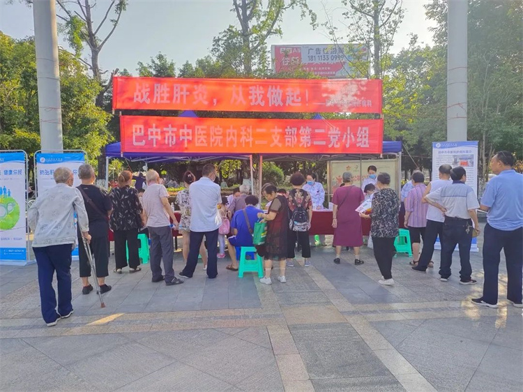 四川新闻网消息 2022年7月28日是第十二个“世界肝炎日”,当天上午,巴中市中医院肝病科在回风新天地广场,开展了以“战胜肝炎 从我做起”为主题的健康义诊、咨询和宣教活动。院工会主席、市医学会肝病专业委员会主任委员、主任中医师张金平,肝病科主任、副主任医师段飞,肝病科护士长、主管护师杨柳梅组织科室医护骨干10余人参加此次活动。