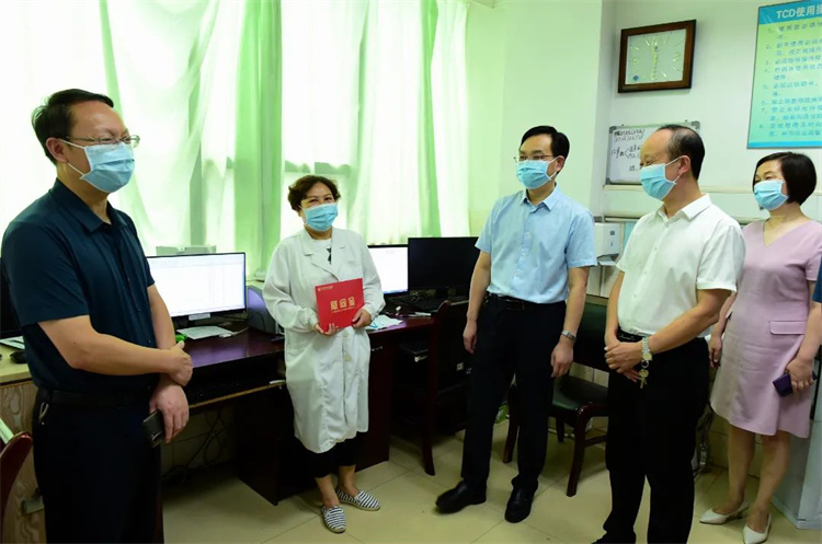 院领导来到诊室、检查室、值班室等地,与坚守岗位一线的退役军人亲切交谈,详细询问他们的身体情况及家庭生活状况,悉心听取他们对医院建设发展的意见建议,对他们所做的贡献致以崇高敬意,并送去慰问金,祝愿他们身体健康、生活幸福。