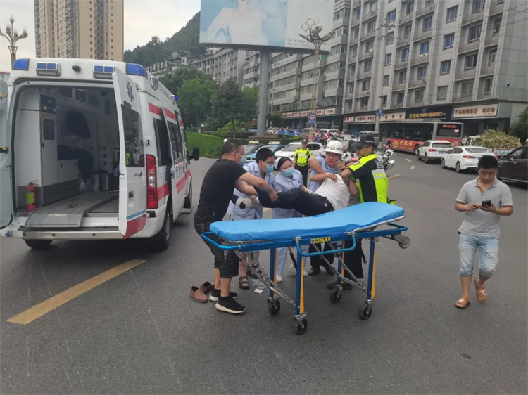 8月3日9时许,巴中公安交警通江大队执勤交警周坤鹏、邹季成在壁州大道壁山森林公园门口疏导交通时,偶遇一起交通事故,两轮摩托车驾驶人受伤。两名执勤交警发现后,立即联系120,并做好现场保护工作,同时不断安抚伤者情绪。待救护车到达现场后,执勤交警协助医护人员将伤者送上救护车。看着伤者得到及时救治,他们又回到自己的工作岗位继续疏导交通。