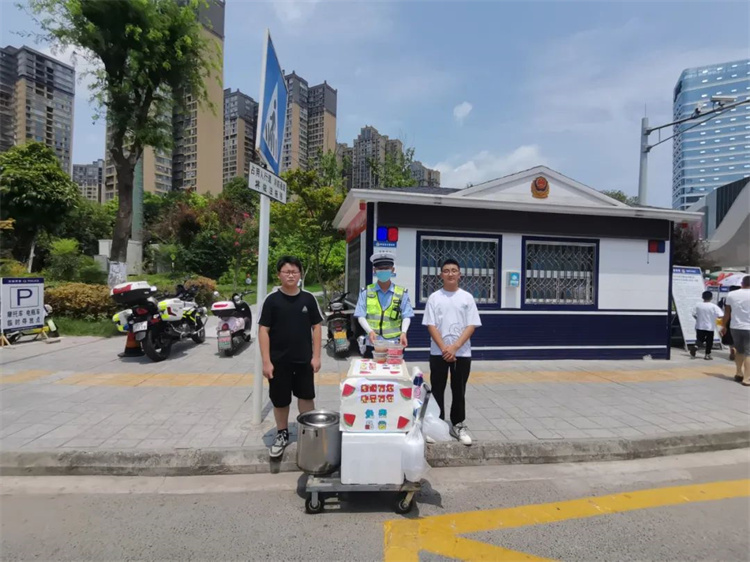 8月2日下午,一位家长带着自己的两个孩子来到了兴文经开区黄家沟岗亭,还带着自己亲手做的解暑绿豆汤和西瓜,只为感谢交警们平日里的辛苦付出。两个孩子说,“平时上学放学路过的时候,看着路边的交警,天气这么热,还站在大太阳下指挥着交通,很辛苦,父母常说,要让我们怀着一颗感恩的心。”