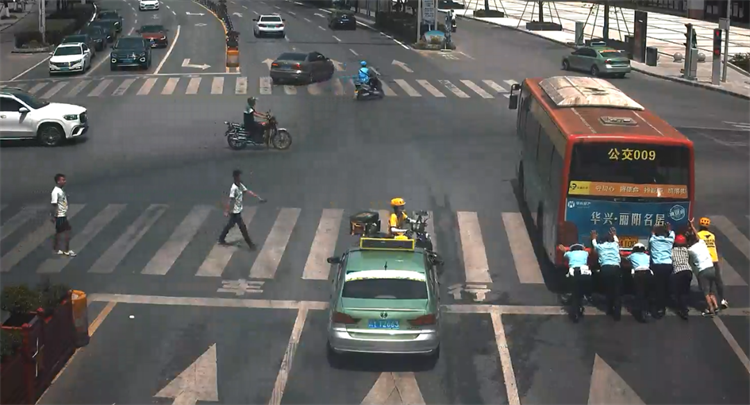 近日,一辆公交车抛锚,停在巴州大道龙湖路口,影响通行,巴中公安交警直属二大队执勤交警代金民、张亮发现情况后,与过往驾乘人员、外卖小哥合力将车推到安全区域,疏导了交通。