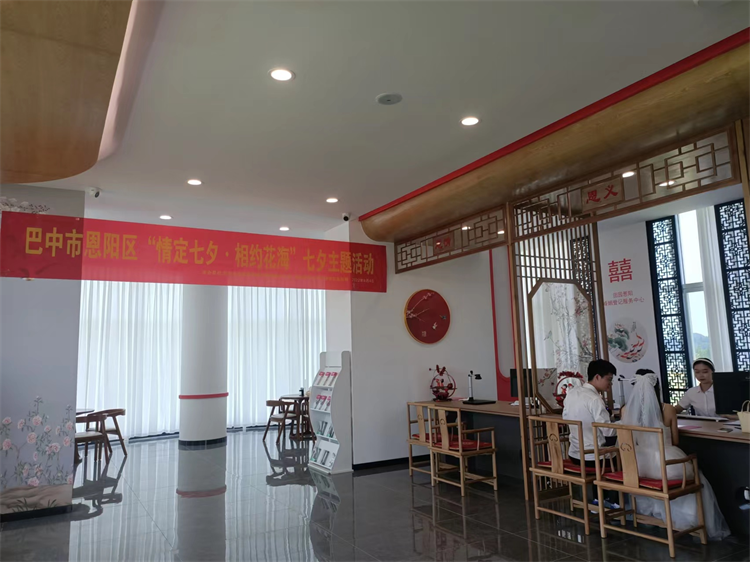 恩阳区民政局田园恩阳婚姻登记服务中心在今日开展了“情定七夕,相约花海”主题活动。婚姻登记工作人员利用新人在大厅等候的时机,为他们宣传婚俗改革,提倡婚事新办。讲解夫妻相处、婚姻家庭经营之道,引导他们树立正确的爱情观、婚恋观、家庭观。现场为新人赠送了玫瑰花,作为特别的七夕节纪念,增加了婚姻登记的仪式感。