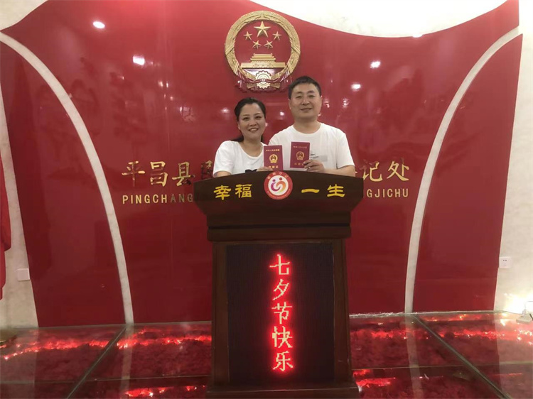 南江县民政局婚姻登记窗口,有人穿着情侣衫,有人头戴白纱,仪式感十足。填表、登记、领证、合影,平昌县民政局婚姻登记办理登记的工作人员则在忙碌中,见证了有情人幸福牵手,纷纷为他们送上了祝福。(图据巴中市民政局、南江县融媒体中心)