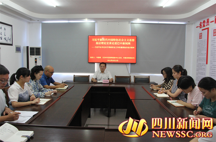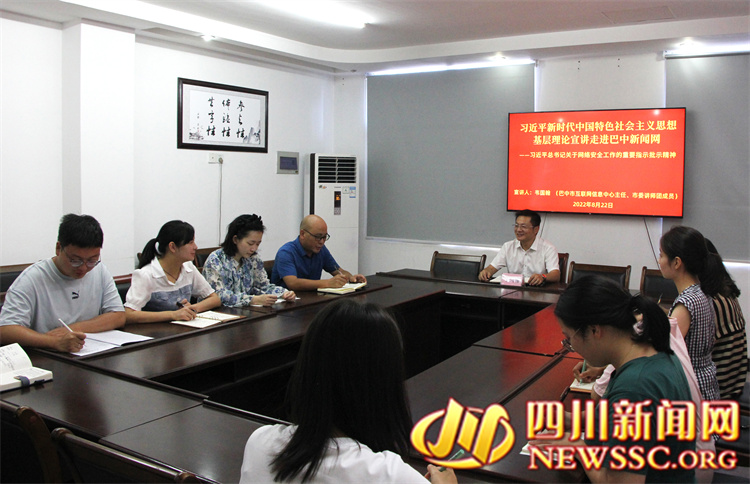 四川新闻网消息(陈珮云 摄影报道)8月22日,习近平新时代中国特色社会主义思想基层理论宣讲走进巴中新闻网,巴中市互联网信息中心主任、市委讲师团成员韦国翰围绕“习近平总书记关于网络安全工作的重要指示批示精神”主题进行理论宣讲。