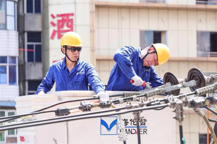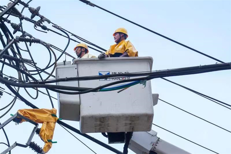 此次作业现场建筑物多、各生意点上的遮阳棚、天空中各种线路横跨,让斗臂车在艰难地行进着,还要不停地看好限高装置,以防出现意外……将近9时30分,车辆终于抵达缺陷现场。尽管骄阳似火,带电作业人员李天阳和他的搭档熟练地带上绝缘手套、护目镜,穿上带电作业服,在绝缘斗臂车的帮助下,到达10米高空,他们小心谨慎地进行着遮蔽作业,然后拆下影响作业的引线,导线、横担、电杆均严实地包裹着,处理断股绑线,安装瓷瓶,固定掉落的导线,重新接引引线……其间,地面人员不断通过绳索向他们传递工具、材料,并将矿泉水“吊”给他们,好让他们补充水分。11时35分,故障处理完毕,看着浑身湿透的作业人员,过往行人无不感叹“真是辛苦!