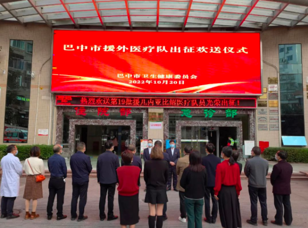 四川新闻网消息 10月20日,巴中市举行欢送第19批援几内亚比绍医疗队出征仪式。市卫生健康委党组书记、主任陈槟参加欢送仪式并对大家提出殷切希望。市卫生健康委党组成员、副主任胡杰,市中心医院、巴州区卫健局、市中医院相关领导参加活动。