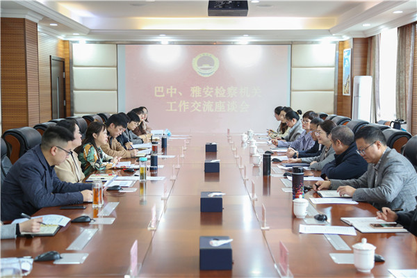 11月8日,王燕一行到雅安市检察院交流工作,雅安市检察院党组成员、副检察长张杰,党组成员、政治部主任王松、部分部门负责人参加。
