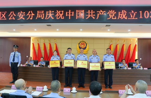 升旗仪式结束后,巴州区公安分局举行“七一”荣誉授予仪式。分局党委委员、政治处主任何昭帆宣读了分局党委关于《关于表扬先进基层党组织、优秀党务工作者和优秀共产党员的决定》,与会局领导为荣获先进基层党组织、优秀党务工作者和优秀共产党员颁发了奖牌和证书;副区长、分局党委书记、局长李庄为2名老党员颁发“光荣在党50年”纪念章,并向他们致以诚挚问候和崇高敬意。