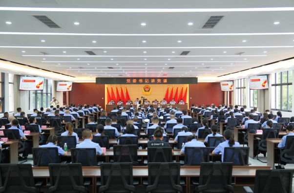 表彰会议结束后,副区长、分局党委书记、局长李庄以《发扬自我革命精神 扎实开展党纪学习教育 为提升巴州公安新质战斗力注入党纪力量》为题,为全体党员民辅警讲授党纪学习教育专题党课。