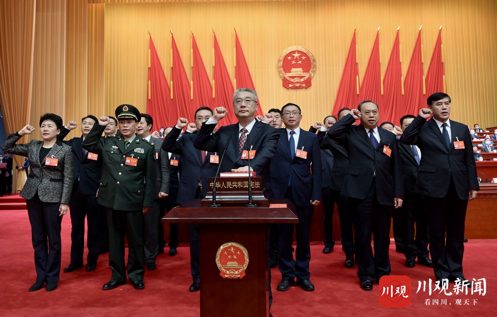 会议举行了宪法宣誓仪式。大会选举的省人大常委会副主任、委员和省监察委员会主任,大会表决通过的省人大专门委员会主任委员,在与会代表的共同见证下进行了宪法宣誓。