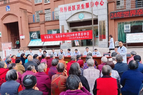 10月29日上午,巴中市中医院(巴中市巴州区人民医院)脑病科、心病科、内分泌科、康复科、麻醉科、肺病科、老年病科等多学科的医护专家在回风陇桥社区开展了以“体医融合,战胜卒中”为主题的公益义诊活动。